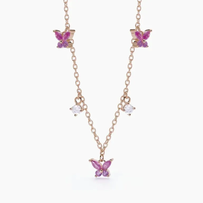 Mabina – Collana in argento rosato con zirconi rosa e bianchi