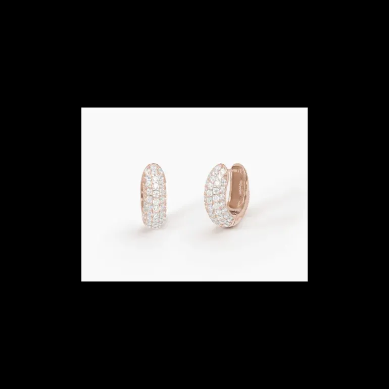 Orecchini a cerchio in argento rosato con pavé di zirconi. • Misura unica • Materiale: Argento 925 rosato, Zirconi • Codice: 563318