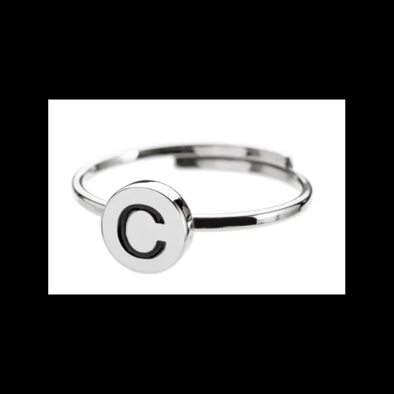 Anello regolabile in acciaio con lettera smaltata, Misure anelli da 11 a 18 regolabile, dimensioni piastrina lettera 6,8mm Collezione Oui c’est moi Materiale: acciaio, smalto