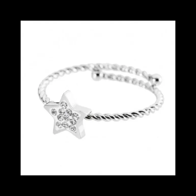 Anello regolabile in acciaio con stella e cristalli Materiale: acciaio, cristalli