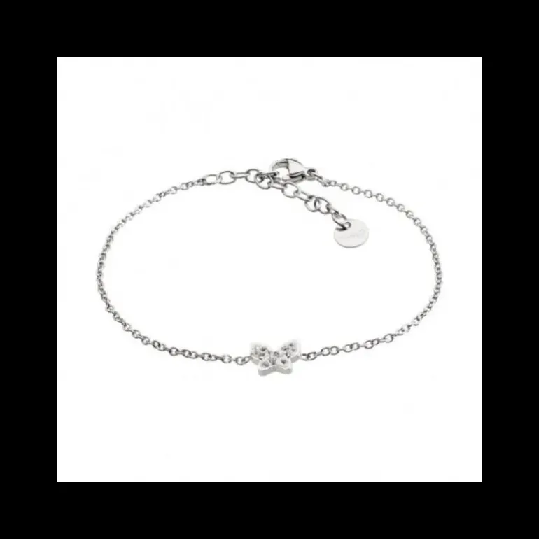 Bracciale in acciaio farfalla con cristalli, lunghezza 16 cm con estensione di 3 cm Collezione: Time To Materiali: acciaio, cristalli