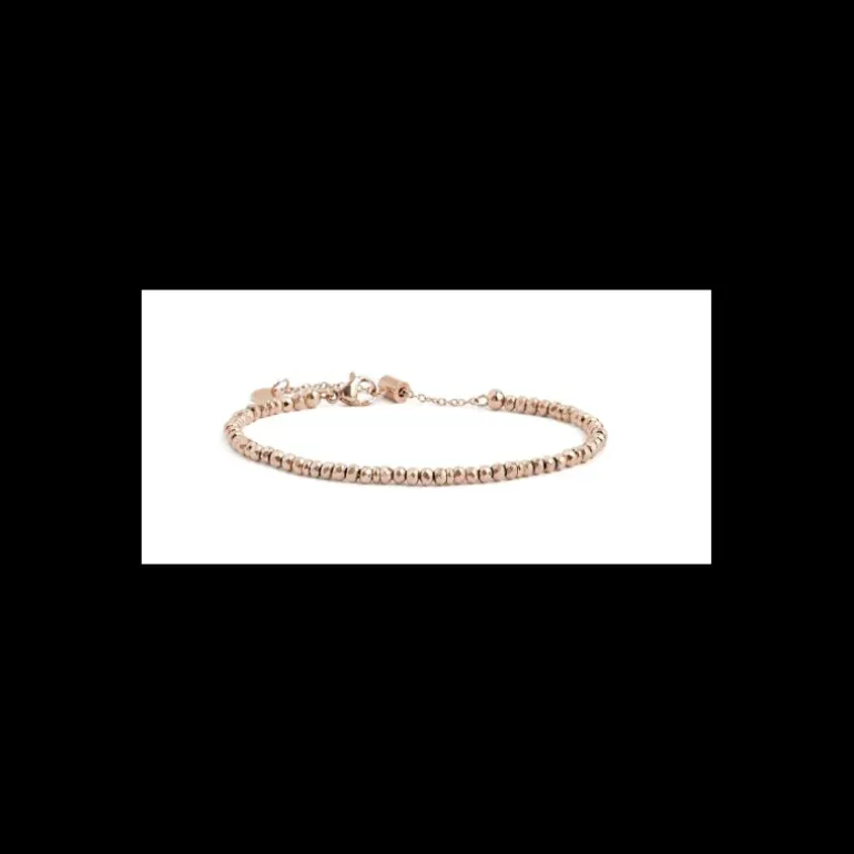 Bracciale in acciaio ed ematite con pvd rosé. Lunghezza totale: 19 cm. Regolabile tramite cursore da 19 a 15 cm. Tag logo Marlù presente alla fine. Materiali: acciaio, ematite, pvd rosé Collezione: BEW08