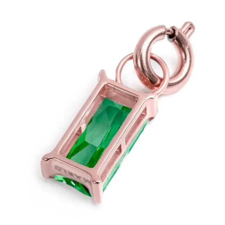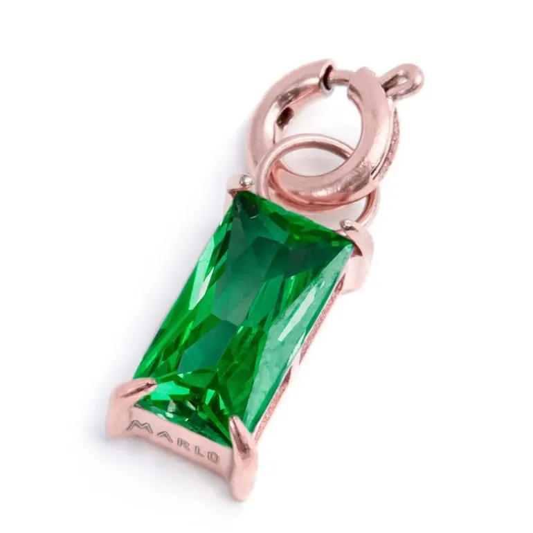 Charm con cubic zirconia taglio baguette 0,8*0,4 cm. Marlù logo laserato sul fondo.