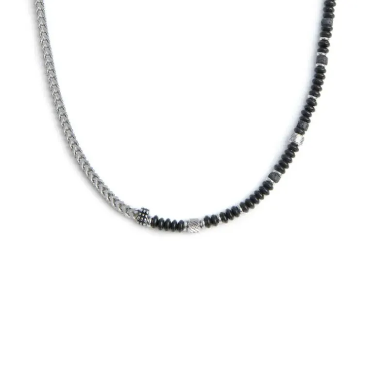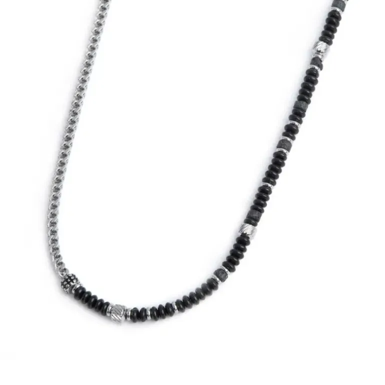 Marlù Collana catena fish bone con dischetti di onice nera e pietra lavica