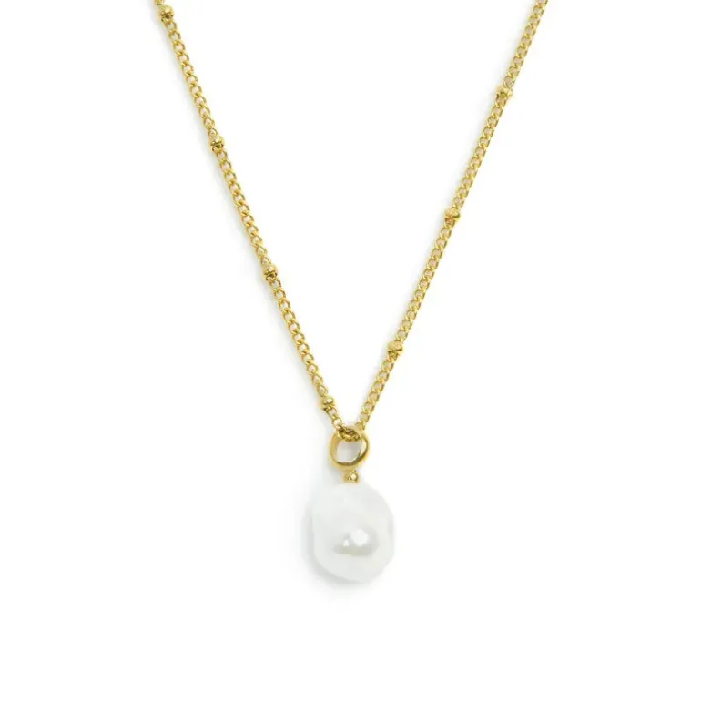 Marlù Collana catena grumetta con sfere e perla irregolare pendente