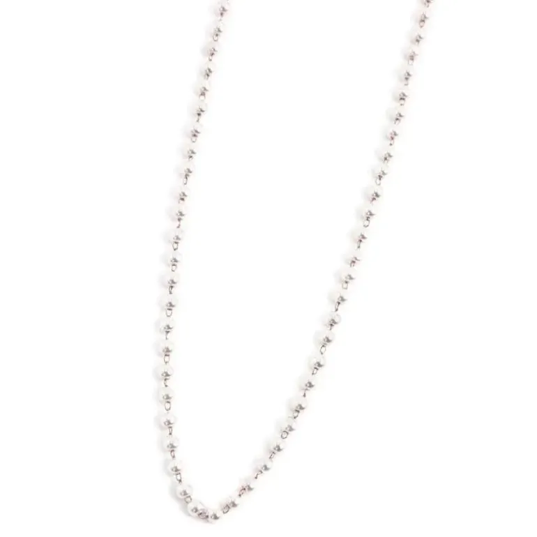 Collana in acciaio con rosè pvd con catena di perle con diametro 3.30 mm. Lunghezza totale 50 cm regolabile da 50 cm a 40 cm tramite cursore. Marlù logo tag presente all’ estremità. Collezione: BEW06 Materiali: acciaio con pvd rosé, perle