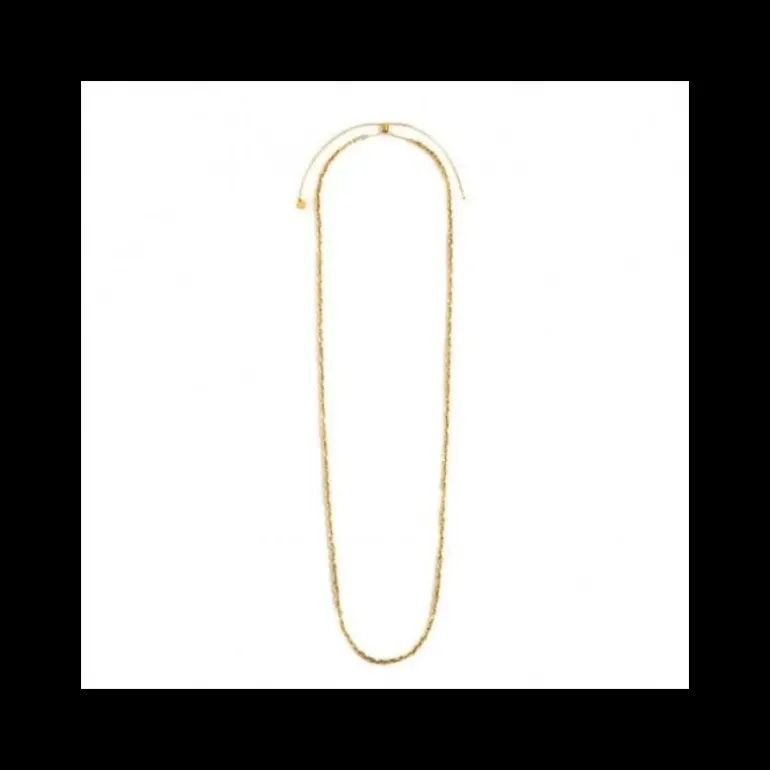 Collana in acciaio con pvd oro con catena “O” e catena square wire twist. Lunghezza totale 90 cm regolabile tramite cursore cilindrico con silicone da 90 cm a 70 cm. Marlù logo tag presente all’ estremità. Collezione: BASI Materiali: acciaio con pvd oro