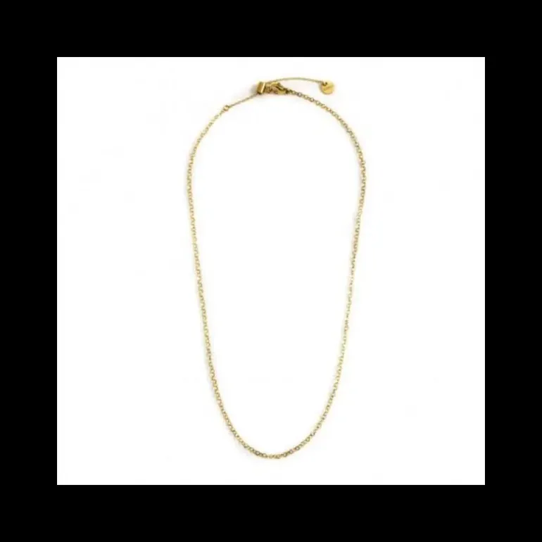 Collana in acciaio con pvd oro con catena “O” e catena square wire “O”. Lunghezza totale 45 cm regolabile da 45 cm a 40 cm tramite cursore cilindrico con anello con silicone. Marlù logo tag presente all’ estremità. Collezione: BASI Materiali: accio