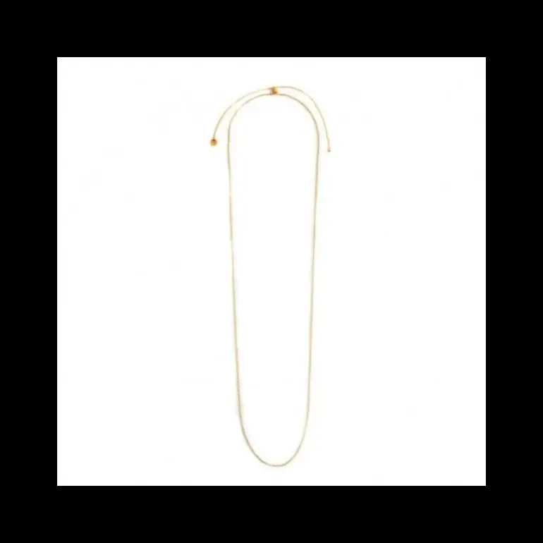 Collana in acciaio con pvd oro con catena “O” con spessore 1.20 mm. Lunghezza totale 90 cm regolabile tramite cursore cilindrico con silicone. Sfera di acciaio e Marlù logo tag presente all’estremità. Collezione: BASI