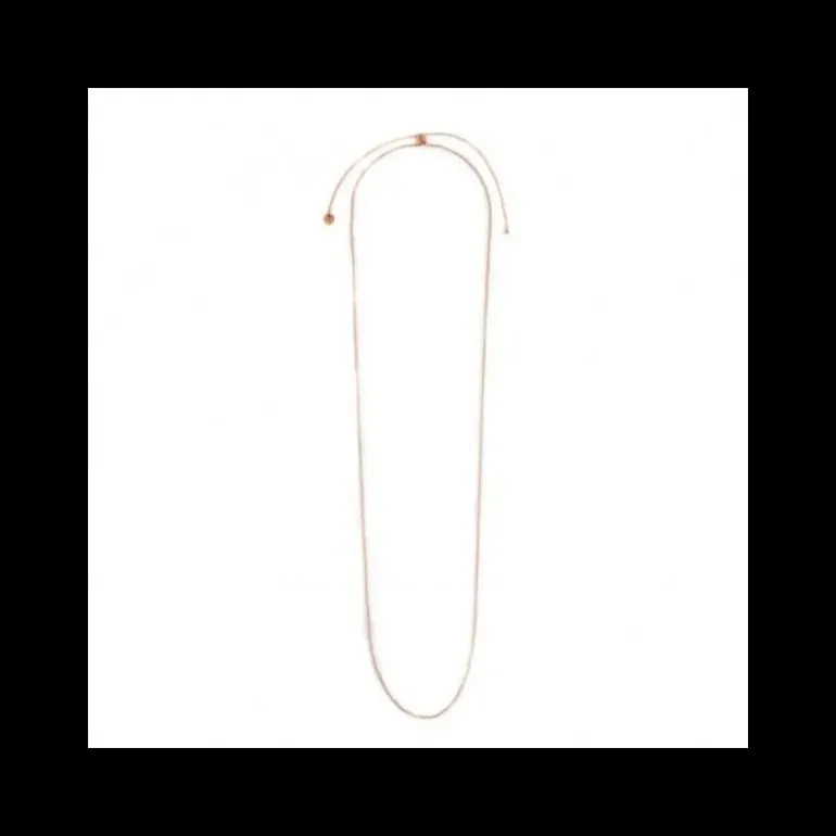 Collana in acciaio con pvd rosè catena “O” con spessore 1.20 mm. Lunghezza totale 90 cm regolabile tramite cursore cilindrico con silicone. Sfera di acciaio e Marlù logo tag presente all’estremità. Collezione: BASI Materiali: acciaio con pvd rosè