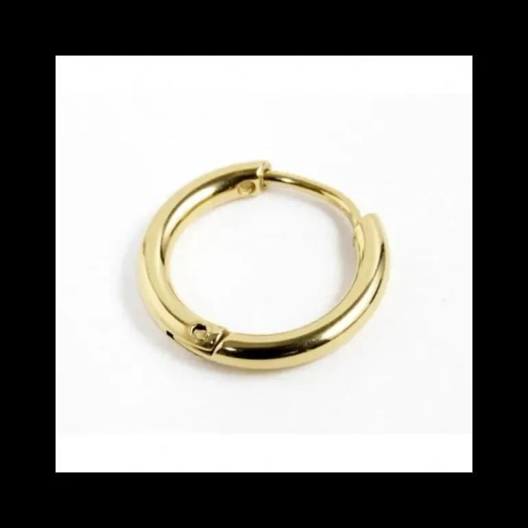 Mono orecchino in acciaio con PVD oro, cerchio con diametro esterno 16 mm, con spessore 1.90mm, chiusura a pressione. Logo Marlù laserato.