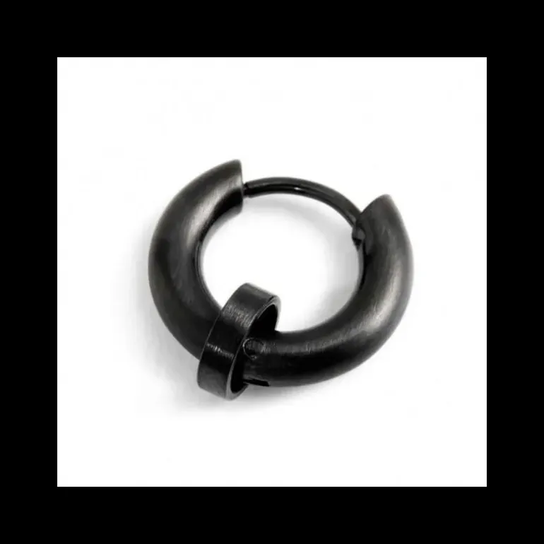 Mono orecchino cerchio in acciaio con pvd nero con anello removibile per charm con diametro di 16 mm, con chiusura a pressione. Il logo Marlù è presente sul lato. Materiale: acciaio con pvd nero