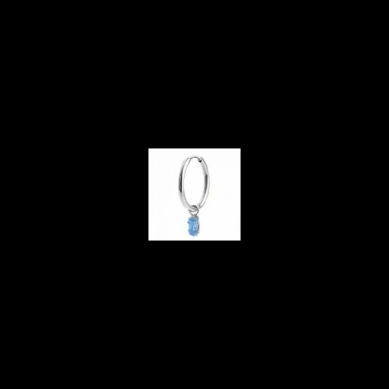 Mono orecchino in acciaio a cerchio con diametro 15,30 mm con chiusura a pressione, con cristallo baguette acquamarina pendente. Logo Marlù laserato sul fianco. Materiali: acciaio, cristallo Collezione: BEW12