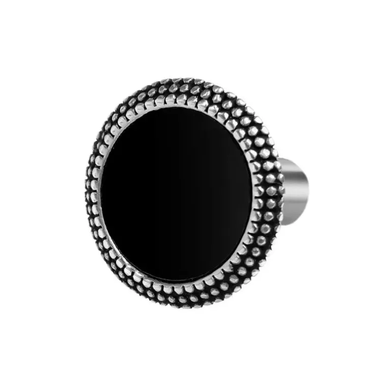 Marlù Orecchino a lobo tondo centro smalto nero con bordo trama puntinata