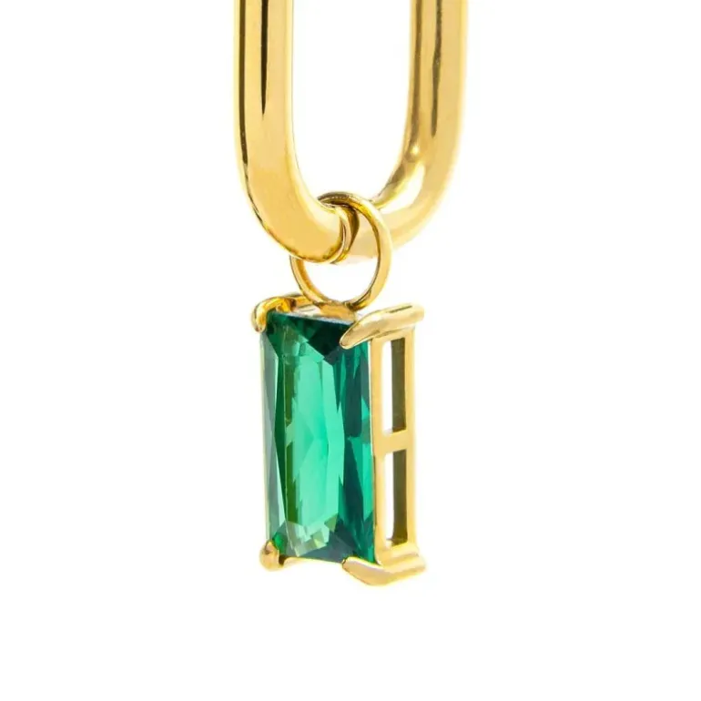 Mono orecchino ovale 1,6*1,1 cm con chiusura a pressione, con cubic zirconia taglio baguette pendente. Logo Marlù laserato sul fianco dell’orecchino e sul fondo del pendente. Lunghezza totale 2,6 cm.