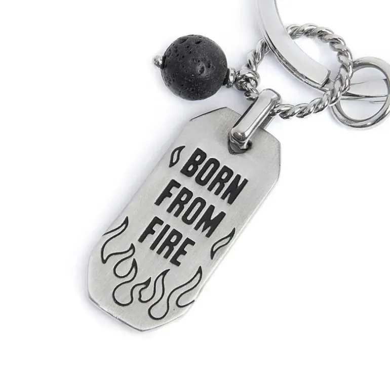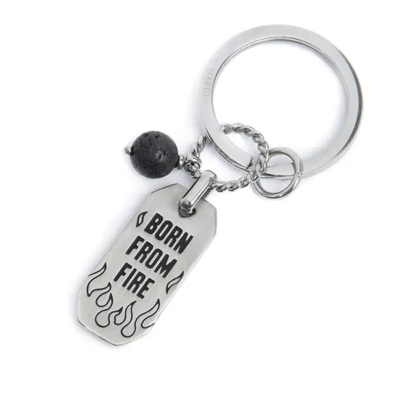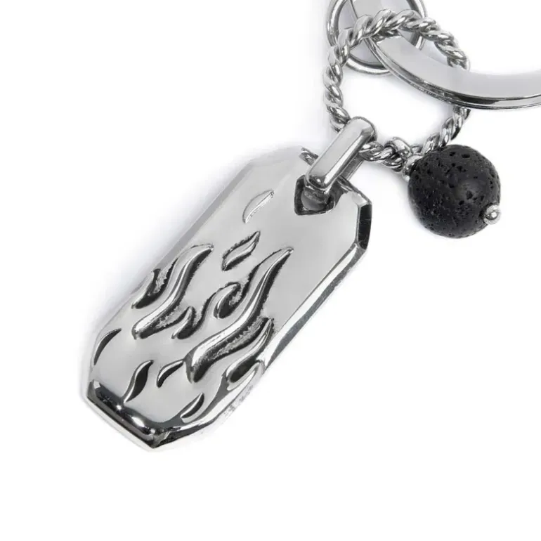 Marlù Portachiavi con fiamme e pendente con pietra lavica