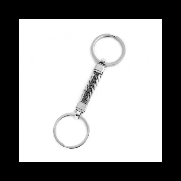 Marlù – PORTACHIAVI DOPPIO ANELLO CON CENTRALE TENNIS ZIRCONI NERI ACCIAIO