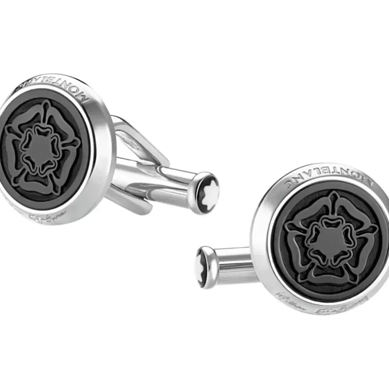 Questi gemelli si ispirano alla Writers Edition di William Shakespeare. L’intramontabile forma rotonda in acciaio pregiato lucido e la rosa Tudor realizzata con un inserto di pregiata resina nera creano un gioiello dalle infinite possibilità di evidenziare lo stile e la personalità di chi lo indossa. Realizzato in acciaio.