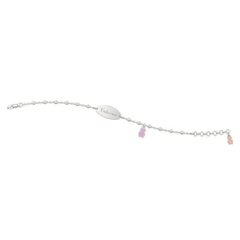 Il raffinato bracciale in puro argento della linea Nanàn Bijou è rifinito nei dettagli, con una targhetta in cui inserire il tuo nome o quello del tuo bimbo. Due orsetti sono appesi al braccialetto. Dono prezioso, ricordo per la vita. Colore: ARGENTO Composizione: silver 925