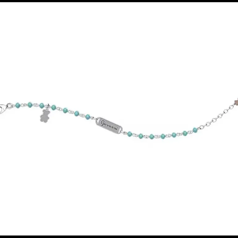 Bracciale di Nanan con targhetta da bambino con decorazioni azzurre con ciondolo orsetto in argento 925.