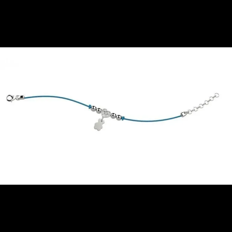 Il bracciale con laccio azzurro della Nanàn Bijou Collection è reso prezioso dal cuoricino in brillantini e dal dolcissimo orsetto in argento, logo di Nanàn. Colore: AZZURRO Composizione: Argento 925