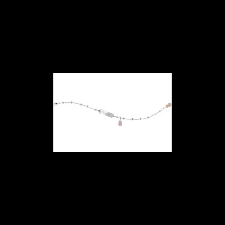 Nanàn Bracciale con Targhetta Personalizzabile e Orsetto Rosa
