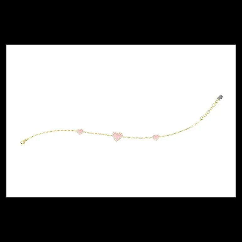 Bracciale in argento 925 con tre cuori rosa avvolti da una cornice di pietre brillanti. È rosa il cuore dei bimbi che con gentilezza ed empatia portano luce nella vita degli altri. Il nostro bracciale in argento 925 è per le loro occasioni più tenere e speciali.
