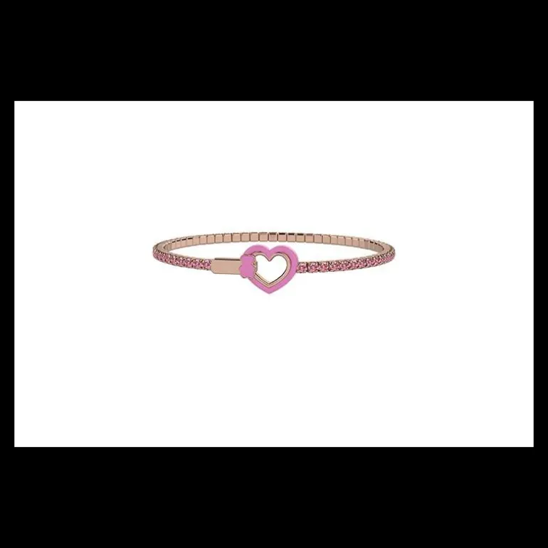 Il raffinato bracciale tennis in argento puro della linea Nanàn Bijou reso unico e speciale dal cuore centrale. Colore rosa.