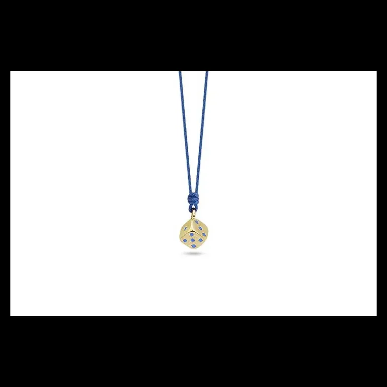 Pendente in Argento 925. “Giocare” è il verbo preferito di tutti i bimbi del mondo. Il nostro dado in argento 925 color blu e oro è un dono speciale per celebrarne l’importanza e la bellezza. Con chiusura di sicurezza e regolabile in base alla dimensione del collo dei bimbi.