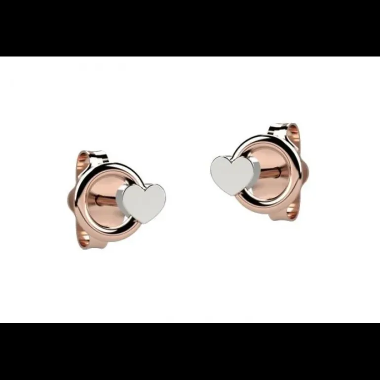 Coppia di orecchini a cerchietto placcati in oro rosa con un dolce cuoricino in argento