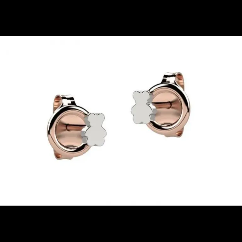 Coppia di orecchini a cerchietto placcati in oro rosa con un dolce orsetto in argento