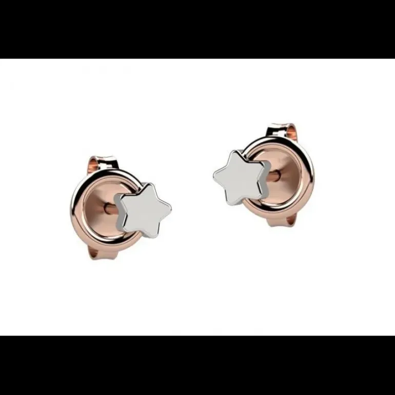 Coppia di orecchini a cerchietto placcati in oro rosa con un dolce stellina in argento