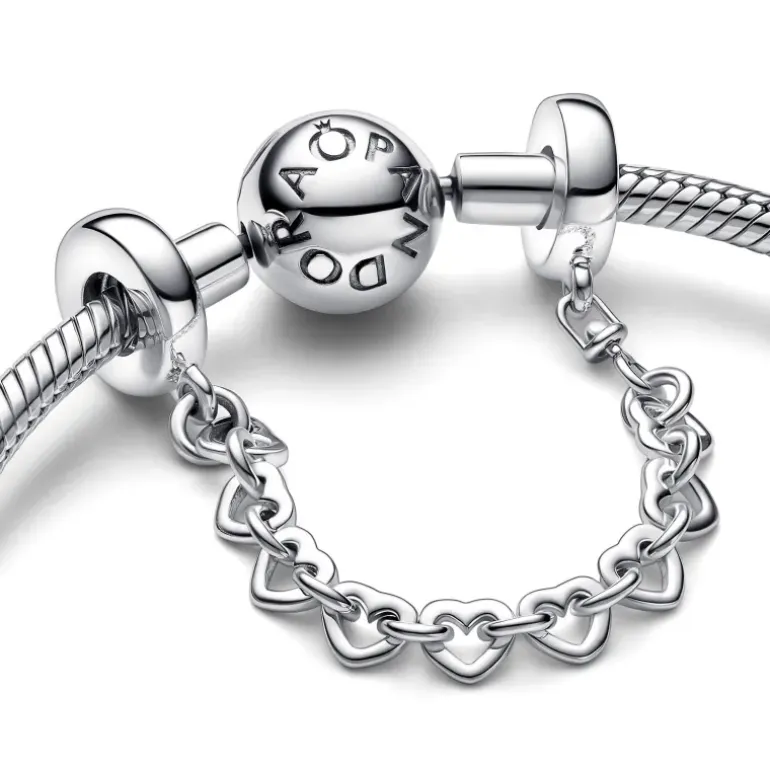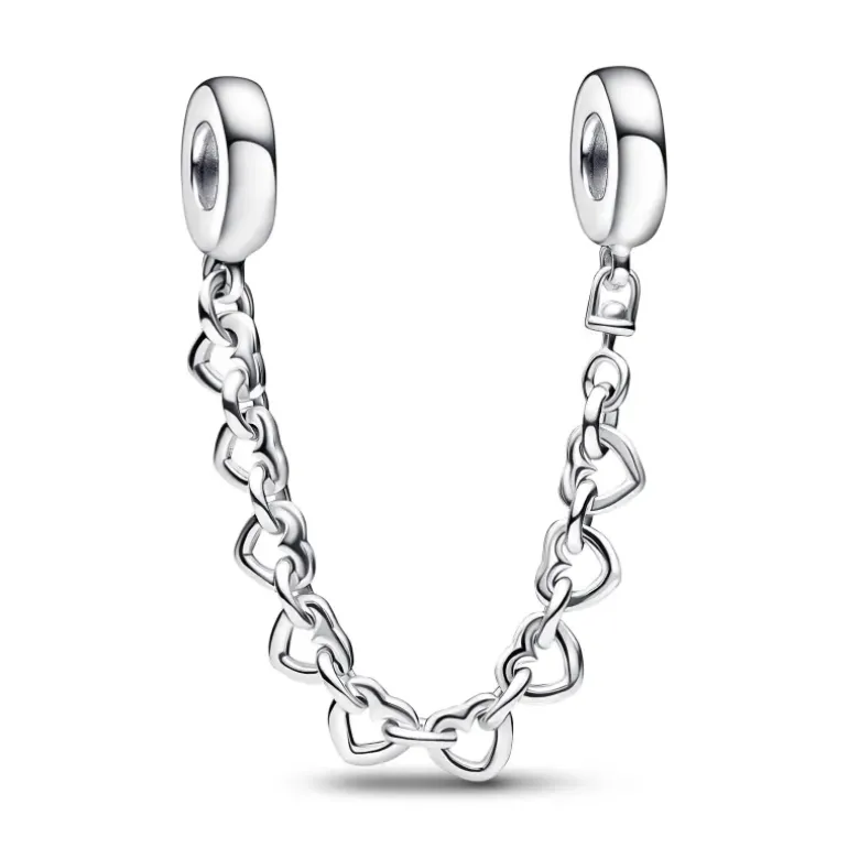 Proteggi i tuoi charm con stile con la catena di sicurezza Cuori intrecciati. Questa rivisitazione di un design classico è decorata da maglie in argento sterling 925 lucido rotonde e a forma di cuore che simboleggiano l’amore. Indossala per suddividere il tuo bracciale preferito e per far risaltare i charm che ami di più.