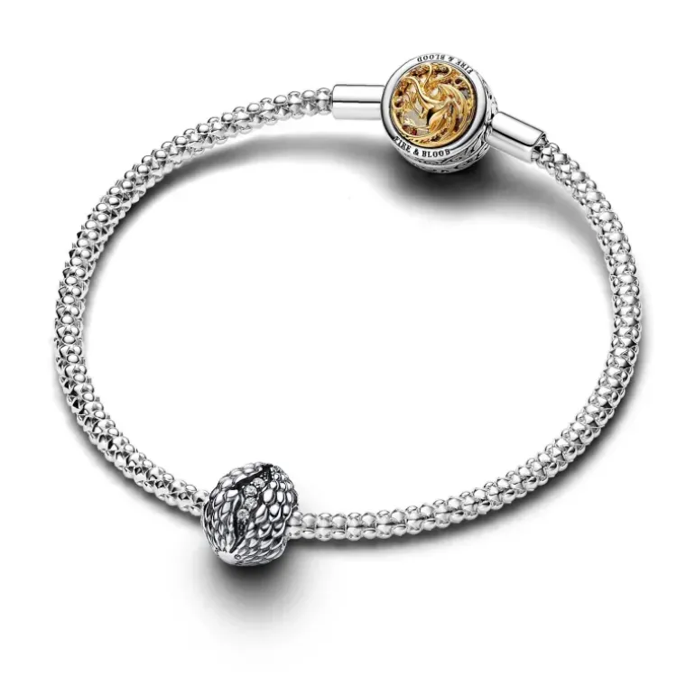 Indossa il potere dei regni con il charm Uovo di Drago della collezione Game of Thrones x Pandora. Realizzato in Argento Sterling 925, questo charm a forma di uovo presenta dettagli che ricordano le squame dei draghi. Una crepa attraversa l’uovo da cima a fondo ed è decorata da scintillanti pietre di zirconia cubica incolore. Aggiungi questo gioiello alla tua collezione per ricordare le storie e i personaggi di Game of Thrones che ami di più.
