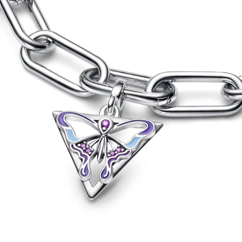 Il nostro medallion Butterfly Pandora ME aggiungerà un simbolo di libertà al tuo stile. La farfalla è un simbolo di trasformazione, femminilità e eleganza. Con i suoi dettagli in smalto viola e amaranto e con i cristalli viola, il medallion in Argento Sterling 925 mostra la farfalla all’interno di un triangolo, per aggiungere una forma nuova ai tuoi look. Inserisci il mini pendente sui link apribili della collana, del bracciale o degli orecchini a maglia link ed esprimi te stessa.