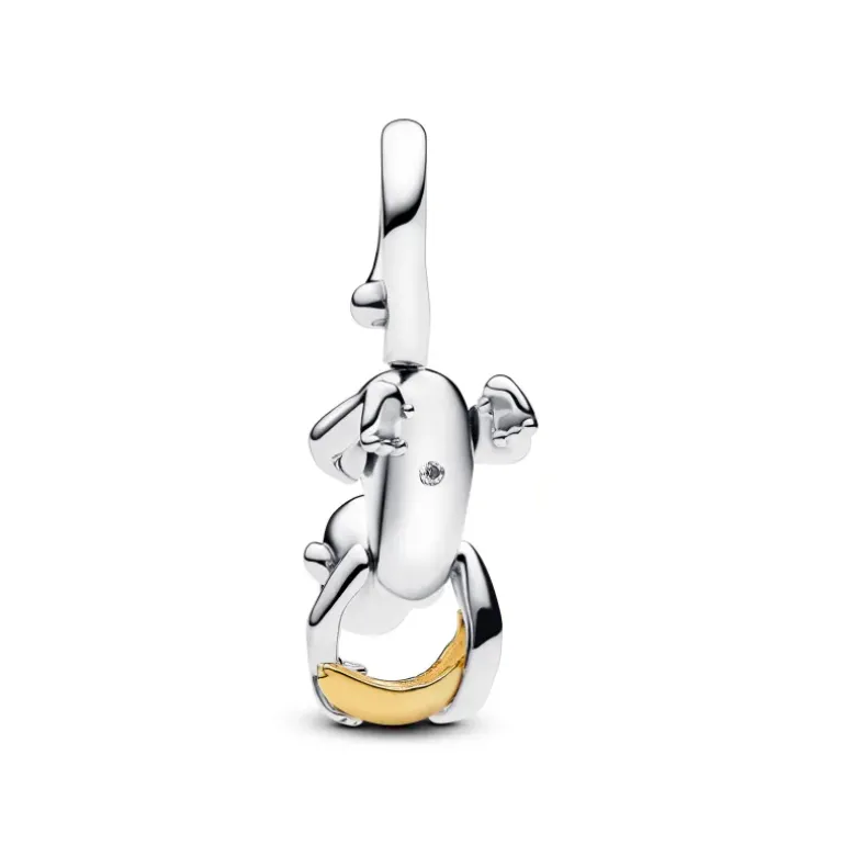 Aggiungi un tocco unico al tuo look con questo Charm Pendente Scimmietta con Zampe Mobili. La scimmia, una creatura nota per la sua giocosità, ha ispirato il design di questo charm. Una scimmia sorridente in Argento Sterling 925 è appesa a testa in giù e tiene in mano una banana con placcatura Oro 14k, con una pietra di zirconia cubica incolore che forma l’ombelico e due cristalli neri al posto degli occhi. La coda e le zampe sono mobili e aggiungono un tocco allegro al charm. Porta con te questo gioiello per ricordarti sempre di sorridere e divertirti. Compatibile con Pandora ME/Moments Collezione Pandora Moments Colore Nero Temi Animali Categoria prodotto Charm Codice 763343C01 Metallo Esclusiva lega metallica in Argento Sterling 925 con placcatura in Oro 14K Materiale Nessun altro materiale Dimensioni Profondità 7,2 mm Altezza 23,9 mm Larghezza 10,4 mm