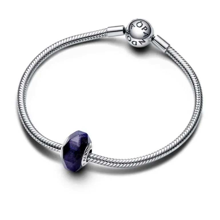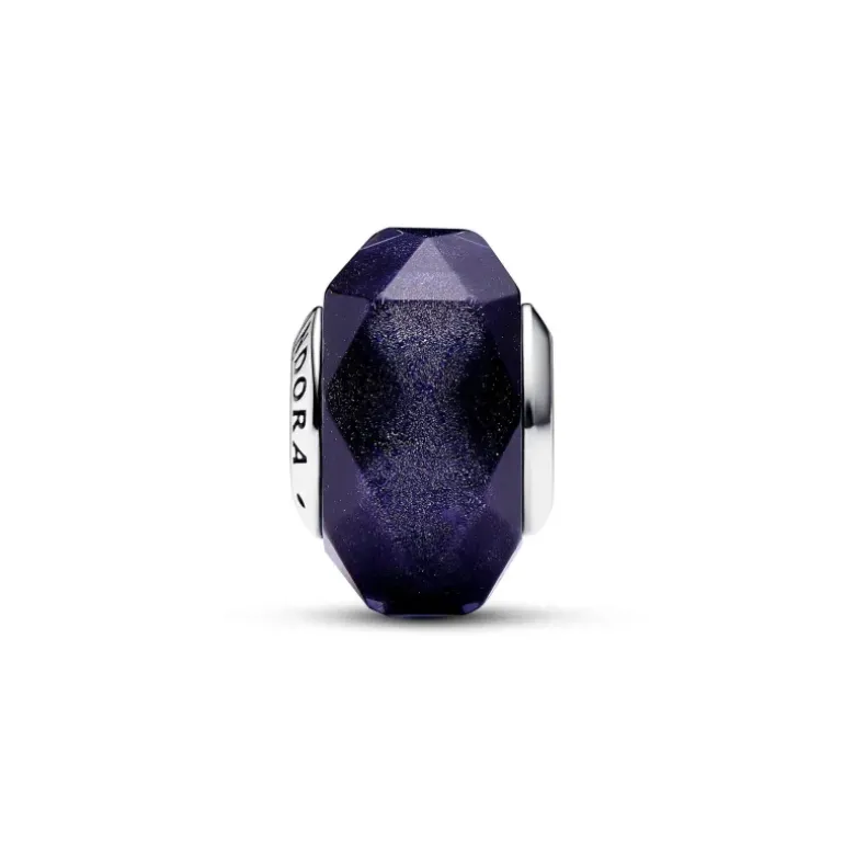 Cattura la magia del cielo notturno con questo Charm Vetro di Murano Notte Stellata Blu. Il vetro di Murano glitterato presenta sfaccettature a forma di rombo che rivelano la profondità di questa tonalità di blu. Il nucleo del charm è realizzato in Argento Sterling 925 e presenta il logo Pandora su un lato. Indossa questo charm sul tuo bracciale preferito per far risplendere il tuo look come il cielo notturno.