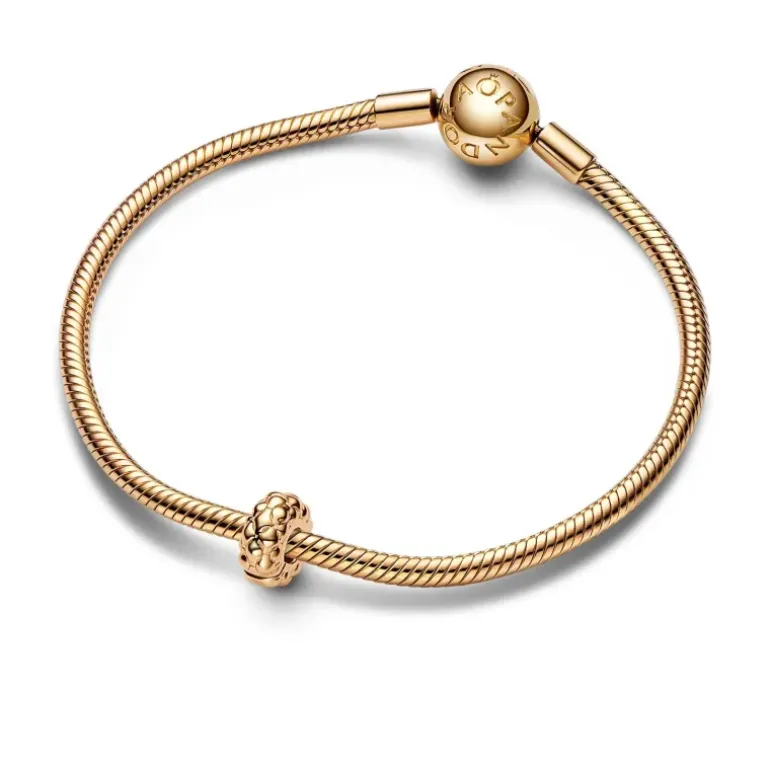 Aggiungi al tuo look questa maglia iconica con la Clip Geometrica Slim. Ispirata alla nuova maglia geometrica, questa clip alterna forme sferiche e piramidali che creano meravigliosi effetti di luce. Realizzata nell’esclusiva lega metallica placcata oro 14k è perfetta per essere indossata su bracciali e collane a maglia geometrica per un look coordinato. La clip presenta inserti in silicone all’interno, pertanto non può essere inserita sulle filettature e resterà ferma in posizione sulla catena mentre ti muovi, distanziando i charm.