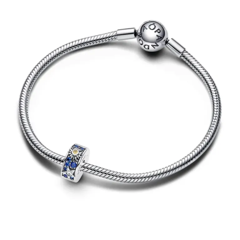 Indossa il potere dei simboli celesti con la Clip Sole, Stella e Luna. Realizzata in Argento Sterling 925, la clip si ispira alla misteriosa bellezza dell’universo e combina i motivi del sole, della luna e delle stelle con pietre scintillanti di zirconia cubica incolore, accostate a cristalli di colore giallo e blu intenso. La clip è rivestita internamente con il silicone e non si adatta alle filettature (i divisori in rilievo del bracciale), rimane fissa in posizione quando applicata a una maglia a snake o a una maglia geometrica. È il tocco finale perfetto per qualsiasi bracciale, per portare sempre con te l’armonia della natura.