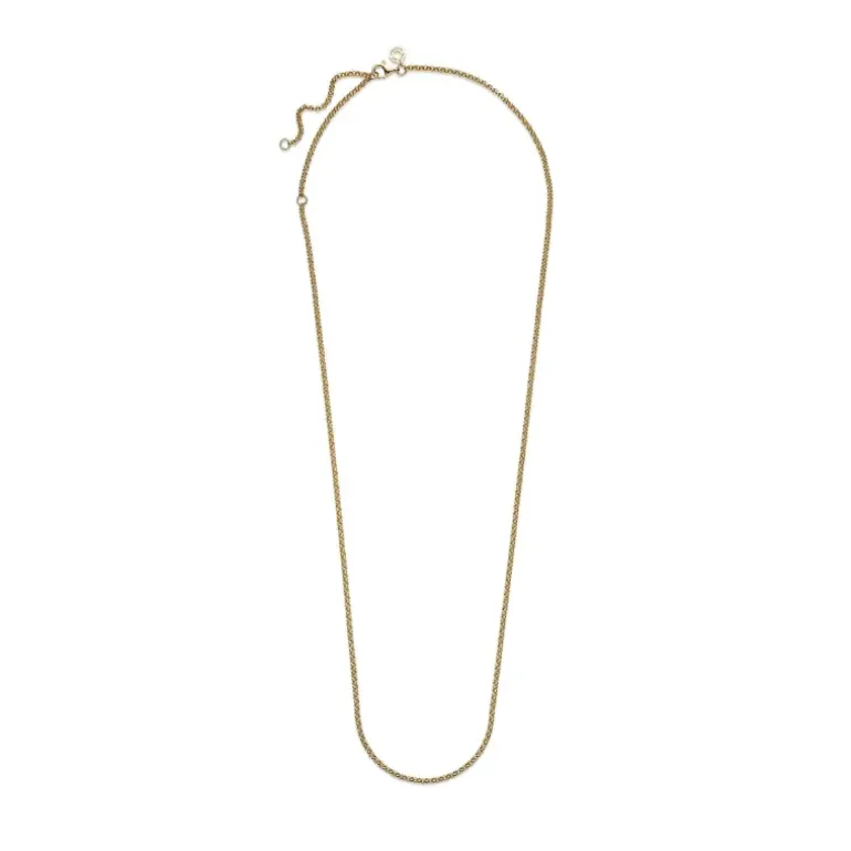 Scopri un modo nuovo di indossare i tuoi charm preferiti con la collana rolò. Rifinita a mano e con placcatura in oro 14k, questa collana dalle linee semplici è regolabile su tre lunghezze diverse. Il gioiello può essere indossato solo con pendenti Pandora O di dimensioni piccole o medie. Inserisci un pendente con una chiusura con gancio scintillante per attirare ogni sguardo. Abbinala con orecchini con placcatura in oro 14k decorati da pietre per un look coordinato e sfavillante.