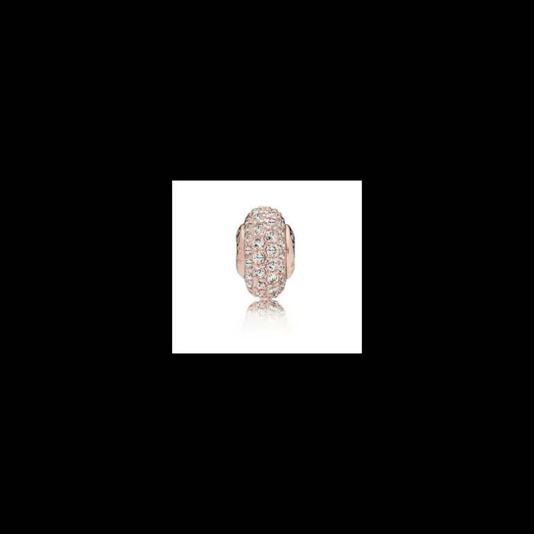Questo distanziatore in PANDORA Rose decorato da luminose pietre trasparenti esprime la sicurezza che accompagna una donna quando prova nuovi sentimenti. L’elegante combinazione di tonalità e texture è perfetta per reinterpretare lo stile del bracciale Essence.