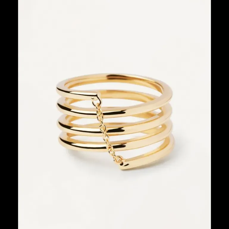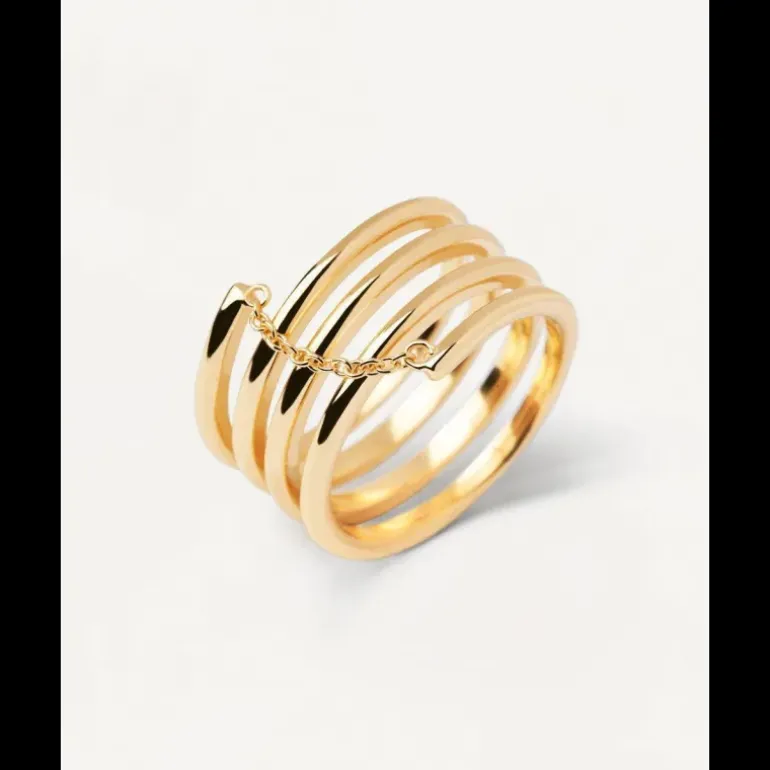 ANELLO A SPIRALE INFINITA IN ARGENTO PLACCATO ORO CON DELICATA CATENINA MATERIALE: Argento sterling 925 FINITURA: Placcatura in oro 18k SPESSORE TOTALE DELL’ANELLO: 8 mm PESO: 5.40g