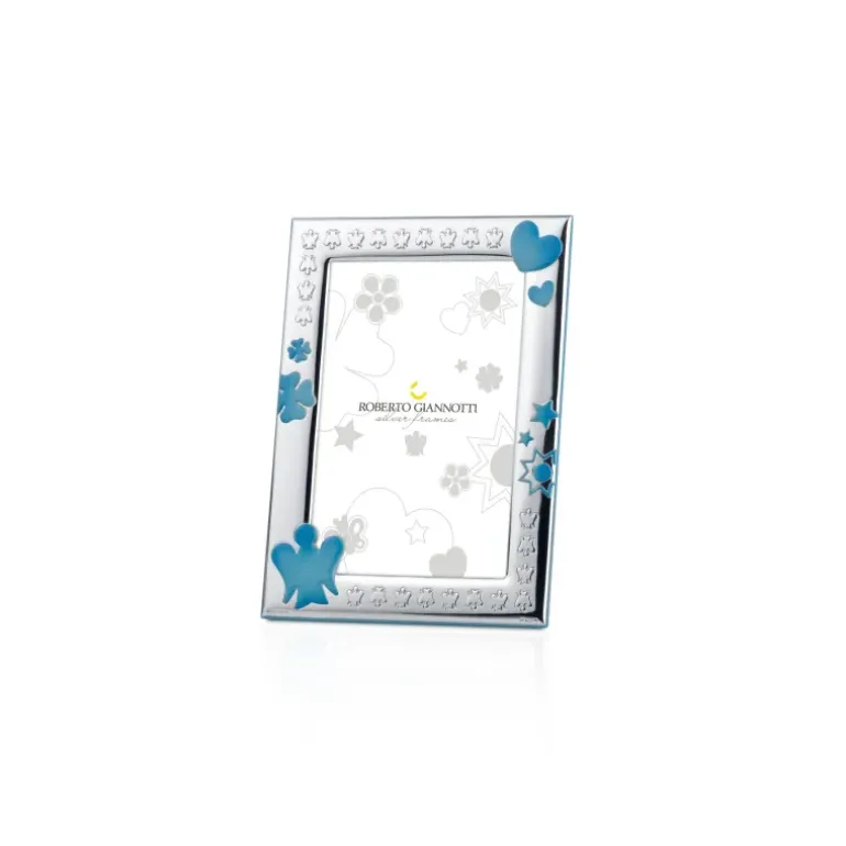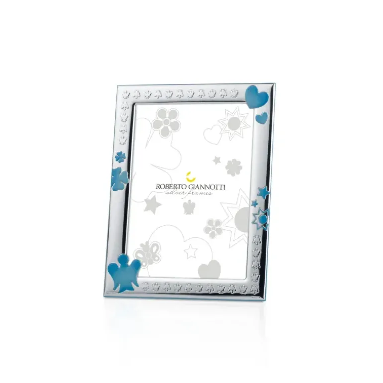 ROBERTO GIANNOTTI – CORNICE IN ARGENTO CON ANGELO, QUADRIFOGLIO, CUORE, STELLA E SOLE IN AZZURRO