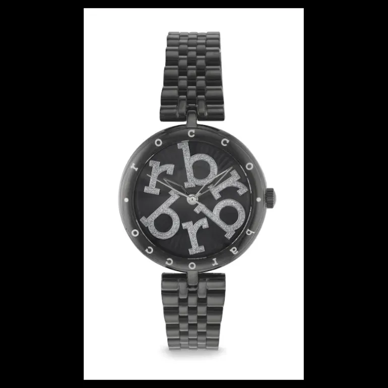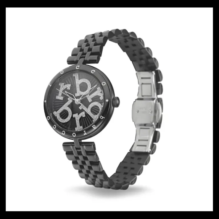 Orologio di RoccoBarocco solo tempo da donna della collezione Rbrbrb. Cassa in acciaio di forma Rotondanero. Il colore del quadrante è nero il cinturino è in acciaio nero. Diametro Della Cassa: 32Mm. Resistenza all’acqua di 3Atm. Movimento Tmi Vj21C.