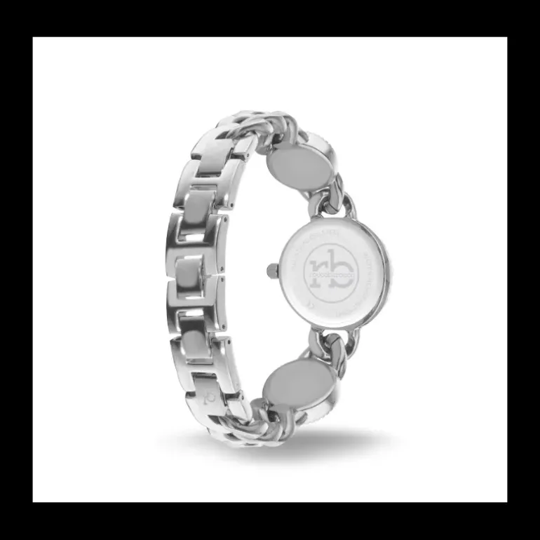 Orologio di RoccoBarocco solo tempo da donna della collezione Victorian Rb. Cassa in acciaio di forma rotonda argento. Il colore del quadrante è argento il cinturino è in acciaio argento. Diametro Della Cassa: 30Mm. Resistenza all’acqua di 3Atm. Movimento Shiojiri Vj20.