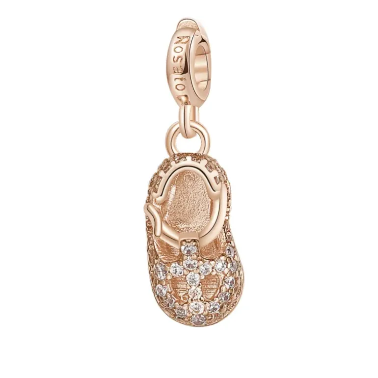 SCARPINA Una nuova vita insieme Charm in argento 925‰, galvanica oro rosa, smalto bianco, 51 zirconi bianchi Significato: Maternità