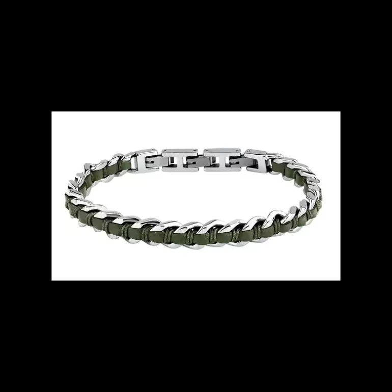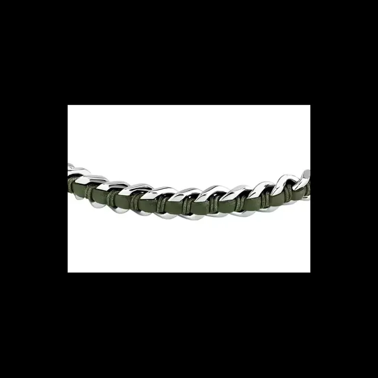 BRACCIALE SECTOR BANDY – SZV124 – Genere: Uomo, Misura: 19|3, Colore: Silver, Verde, fashion, Modello: Catena, Materiale: Acciaio, Pelle naturale, Smalto, Peso: 33,500 gr, Certificato di autenticità: Sì, Confezione: Originale Sector
