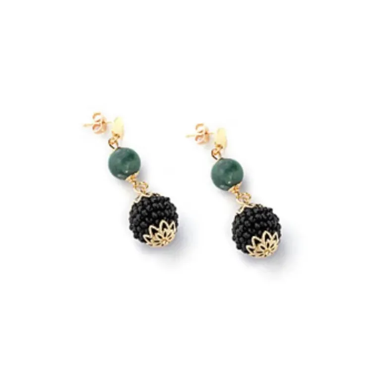 Orecchini da donna di Sovrani della collezione cristal magique. Orecchini solange – ottone placcato oro 24kt, con giada africana e more in cristallo nero. Gioiello di colore verde nero. Lunghezza: 5cm. Chiusura: farfallina. La referenza è j5502