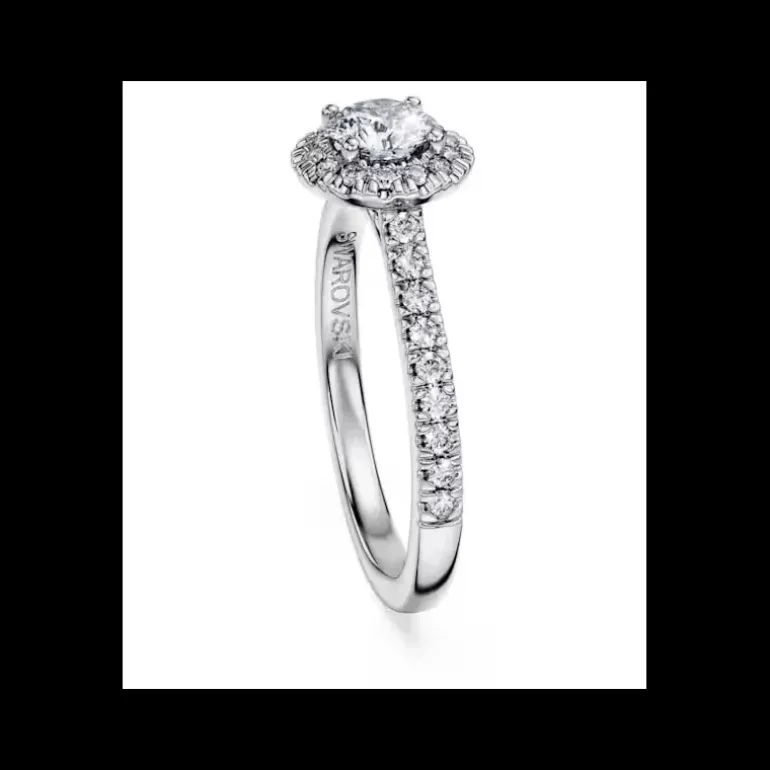 Swarovski – Anello solitario halo Eternity Diamanti creati in laboratorio 0,8 ct tw, Taglio Round, Oro bianco 18 K
