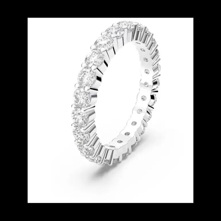 Swarovski – Anello Vittore XL, Taglio tondo, Bianco, Placcato rodio